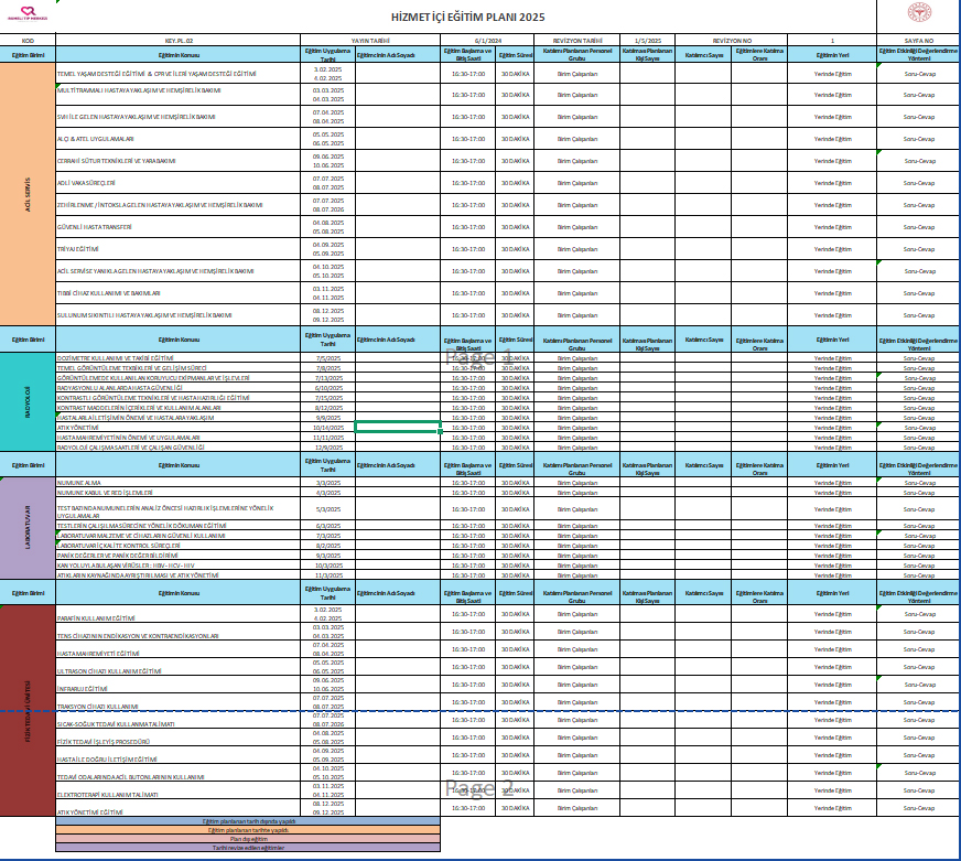 2025 HİZMET İÇİ EĞİTİM PLANI